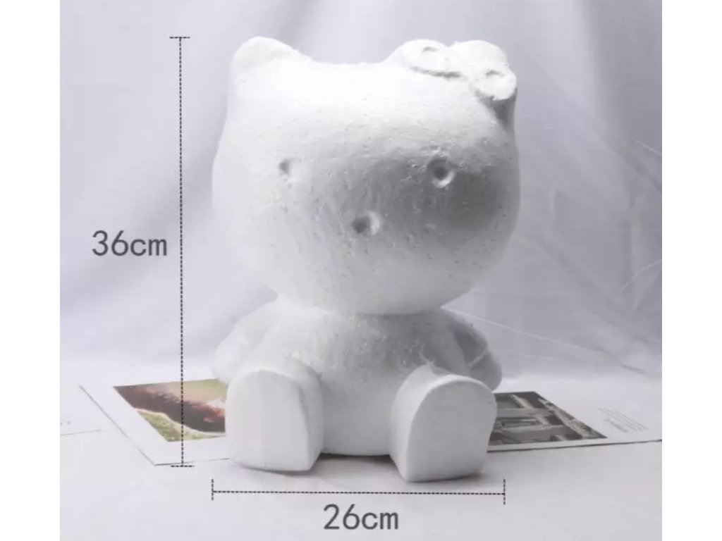 Polystyrenový model hello kitty vhodný k plstění, filcování ovčího rouna, výrobu mozaiky nebo medvídek z ruží, výška medvídka 36 cm.