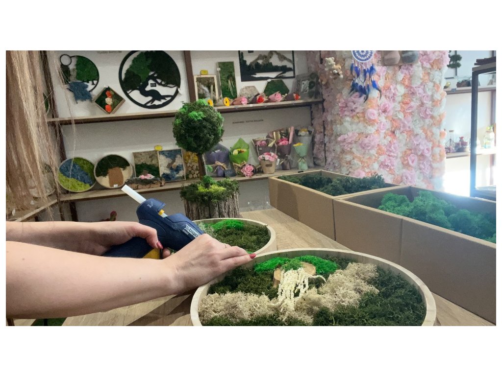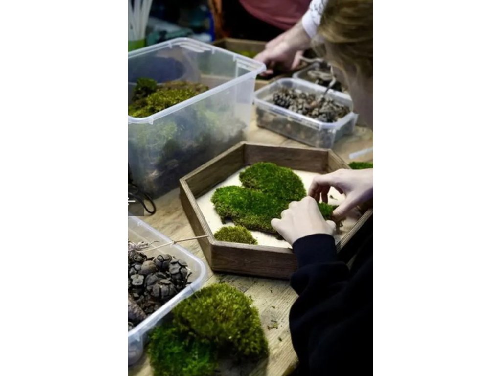 Přijďte si odpočinout, načerpat inspiraci a vytvořit si svůj vlastní mechový obraz o velikosti 30 × 30 cm, který vám bude doma dělat radost každý den.
